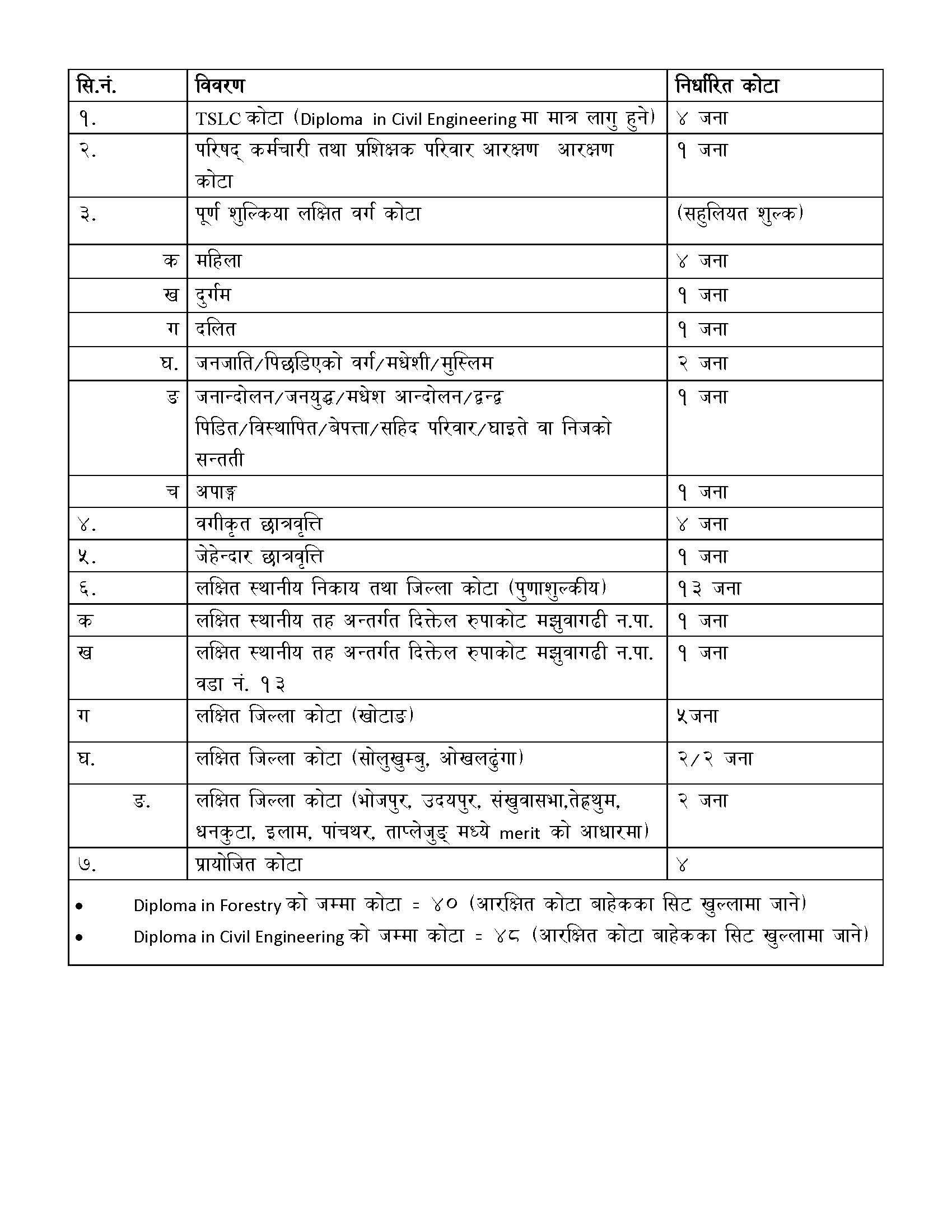 - He/she should have English, Science, and Compulsory Mathematics in SEE with 1.6 GPA or as per provisions mentioned on CTEVT admission guidelines.